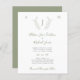Classic traditional monogrammed wedding invitation with bride, groom and last initial personalized monogram featuring rustic vintage greenery botanical leaves and a classy formal elegant modern olive sage green script. +++++++++++++ Suitable for spring and summer weddings. ++++++++++ PLEASE READ THIS BEFORE PURCHASING! This is a budget affordable wedding card printed on a paper sheet (each sheet has one card). ++++ For the best rapport price-quality, our advice is to choose the Semi-Gloss paper type (it is thick enough to be used for stationery) ++++ If you need envelopes, choose the ENVELOPE OPTION. +++ Double-check all the information and spelling of your text because you will receive exactly what you see - no one else will check anything before printing. ++++ This card is designed for size 4.5" x 5.6". In the case you choose another size of the card and text goes outside page, everything needs to be fixed before adding the product to cart. Please ask Live Design Service for help.
