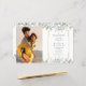 A stylish budget wedding invitation featuring your special photo and pretty sage and lilac leaves that tumble over an elegant gold frame enclosing your wedding details set in classic elegant text. Designed by Thisisnotme©