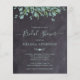 Invite your friends and family to your bridal shower with these rustic chalkboard slate with eucalyptus, elegant but casual bridal shower invitation postcards. These budget wedding invitation postcards need to be mailed as oversized postcards so may incur standard postage fees but they don't need an envelope or a return address label. Personalize with name, bridal shower date, location and any other info. Add website and any other information on the back. These unique greenery bridal shower invitations will make a lasting impression. COPYRIGHT © 2020 Judy Burrows, Black Dog Art - All Rights Reserved. Budget Rustic Greenery Bridal Shower Invitation