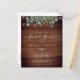 Invite your friends and family to your bridal shower with these rustic wood with eucalyptus, elegant but casual bridal shower invitation postcards. These budget wedding invitation postcards need to be mailed as oversized postcards so may incur standard postage fees but they don't need an envelope or a return address label. Personalize with name, bridal shower date, location and any other info. Add website and any other information on the back. These unique greenery bridal shower invitations will make a lasting impression. COPYRIGHT © 2020 Judy Burrows, Black Dog Art - All Rights Reserved. Budget Greenery Rustic Wood Bridal Shower Invitations