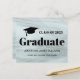 This design features a print of grey-coloured glass in the background with a graduation cap.