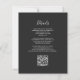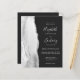 The left-hand edge of this elegant modern wedding invitation features a grey and white watercolor agate border trimmed with faux silver glitter. The customizable text combines handwriting, copperplate and italic fonts in silver grey on an off-black background. The reverse side provides space for wedding details on a solid off-black background, along with a QR code guests can scan to visit your website and RSVP.