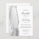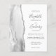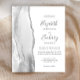 The left-hand edge of this elegant modern wedding invitation features a grey and white watercolor agate border trimmed with faux silver glitter. The customizable text combines handwriting, copperplate and italic fonts in charcoal grey on a white background. The reverse side is solid white. NOTE: Envelopes are not automatically included with these budget invitations, so please remember to choose the "white envelopes" option!