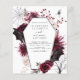 Budget Halloween October 31st Autumn Fall Dark Watercolor Burgundy Wedding Invitations on Black background - includes haunting and scary elegant script typography with modern Flowers and Bat Wings for the special Creepy Wedding day celebration.