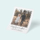 NOTE: Envelopes are not included and this budget-friendly invitation prints on thin paper, not thick card stock. Simple and chic elopement or small wedding announcement and wedding reception or celebration party invitation. The front features your photograph in a cut out square frame, "happily ever after" in a trendy script with swashes and your first names and wedding date and location in modern typography. On the reverse side, you can personalize your wedding announcement in more detail, add a reception or party invitation and sign your married names in a signature-like script.