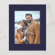 This is a budget elegant and minimal New Years card on a paper flyer. The front features a simple photo combined with “Happy New Year” in a beautiful handwritten script font. The back of the card uses an elegant and fresh white and navy blue stripe design.