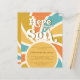 This budget sun-themed boy's baby shower invitation features "Here Comes The Son" in stylish typography on a colourful sunburst background.