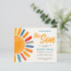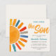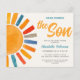 Invite family and friends to your sun-themed baby shower with this cute sunshine boys' baby shower budget invitation. It features the text "Here Comes The Son" in stylish typography with a colourful watercolor sun on a soft cream background. Easily customizable. Original Watercolor © Michele Davies.