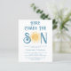 Invite family and friends to your sun-themed baby shower with this cute budget boys' baby shower invitation.
