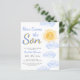 Invite family and friends to your sun-themed baby shower with this budget boys' baby shower invitation. It features the text "Here Comes The Son" in stylish blue typography with a cute yellow watercolor sun and clouds. The back is decorated with a smiling sun pattern. Easily customizable. Original Watercolor © Michele Davies.