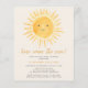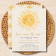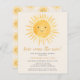 Invite family and friends to your sun-themed baby shower with this cute budget baby shower invitation. It features the text "Here Comes The Sun" in stylish typography with an adorable yellow watercolor sun on a soft cream background. The back is decorated with a smiling sun pattern. Easily customizable. Because we create our artwork you won't find this exact image from other designers. Original Watercolor © Michele Davies.