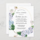 Blue hydrangea flowers and blush rose florals decorate a gold oval frame. An open and airy modern botanical.