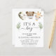 Budget Woodland Animals with Pandemic Corona Virus Safety Masks - Bear, Zebra, Giraffe Eucalyptus Greenery Botanical Watercolor Spring and Faux Gold Glitter It's a Boy Baby Shower Invitations on white background - includes beautiful and elegant script typography with modern botanical leaves and greenery for the special Mother to Be celebration.