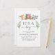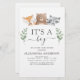 Budget Woodland Animals - Bear, Racoon, Fox Eucalyptus Greenery Botanical Watercolor Spring Gender Neutral It's a Boy Baby Shower Invitations on white background - includes beautiful and elegant script typography with modern botanical leaves and greenery for the special Mother to Be celebration.