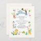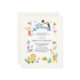 Cute jungle safari animals themed birthday invitation featuring tropical animals, an exotic bird, and other cute party elements. Send out the invites and celebrate the first birthday of the wild one with friends and family.