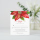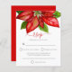 Budget Large Poinsettia Christmas Wedding RSVP This is a smaller size 4.5" x 5.6" budget price paper alternative. Envelopes are an optional extra. With holiday weddings in mind, this elegant design is bordered at the top by a large red poinsettia at the top. Easily personalise the text to your own details. A coordinating Christmassy Red is on the back. You can also change text styles and colours as well as the background colours via the customise further option if you wish.