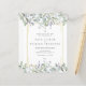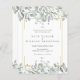 Greenery watercolor floral sage lilac budget wedding invitation featuring pretty sage and lilac leaves that tumble over an elegant gold frame enclosing your wedding details set in classic elegant text. The reverse has your wedding website and RSVP details, and QR code. Designed by Thisisnotme©