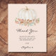 This budget fall baby shower thank you card features a watercolor pumpkin and greenery on a soft peach background. Perfect for an autumn girl, or gender-neutral baby shower. Easily customizable. Because we create our artwork you won't find this exact image from other designers. Original Watercolor © Michele Davies.