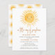 Are you planning a sun-themed baby shower? This budget baby shower invitation features the text "A little ray of sunshine is almost here!" with a cute watercolor smiling yellow sun. There is a cute sun pattern on the back. Perfect for a gender-neutral baby shower. Easily customizable. Original Watercolor © Michele Davies.