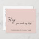 Modern Trendy Hey You Made My Day Custom Script Name Blush Pink Heart Small Business Order Thank You Card