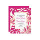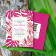 This beautiful BUDGET magenta pink and gold tropical monstera and palm leaves wedding invitation is sure to impress your guests! The stylish invitation features a pattern of tropical leaves in magenta fuchsia pink with gold outline and lettering in a white frame, allowing your text to stand out. The back of the invitation includes a gold polka dot pattern on a magenta background, and a QR code for guests to use to easily RSVP online. With this invitation, you can set the tone for your special day and make sure your guests are able to easily RSVP.