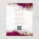This elegant wedding invitation features a burgundy red watercolor border design in imitation of marble veined with faux gold foil, fading gradually into the white background. The word "wedding" appears in gold-coloured handwriting script, with the remaining text in gold-coloured serif capitals. The reverse side provides space for wedding details, along with a QR code guests can scan to visit your website and RSVP.