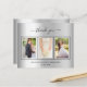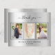 Ajoutez 3 de vos propres photos et une note de remerciement. Un arrière - plan métallique à l'aspect faux argenté avec du texte et un cadre noirs. Le texte : Merci sur l'avant et vos noms sur l'arrière sont écrits avec une écriture manuscrite stylisée avec des swashes.