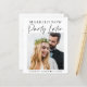 Budget-friendly modern elopement or smaller wedding announcement to let family and friends know that circumstances required you to elope or reduce the number of guests at your wedding, but that you will host a celebration reception party in the future. The front features your photo and "Married Now, Party Later" in a mix of simple typography and a chic script. Add your first names and wedding date. On the reverse, personalize your message in more detail and your names in a signature-like script.
