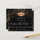 A girly and trendy Save the Date card for a 50th (or any age) birthday masquerade party. A classic black background decorated with faux gold glitter dust and a masquerade mask. Personalize and add a date and name/age. The text: Save the Date is written with a large trendy hand lettered style script.
