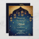 Budget Mehndi / Sangeet Indian Arabian Moroccan style patterns design dark teal blue colour invitation.