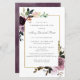 Budget Paper Option. Elegant celebration of a life invitation features two purple rose floral arrangements decorating a gold frame. The deceased person's name is written in a traditional script text. All of the text can be easily edited to create a personal remembrance.