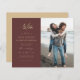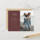This minimalist wedding design is perfect for that modern couple looking for something unique. This budget invitation features a watercolor branch in sepia/gold hues with gorgeous modern typography underneath and your own custom photo on the right-hand side against a beautiful merlot red background. On the back, there is a gold-tone background to perfectly complement the front. Click the blue "personalize" button to add your own details and watch your design come to life in front of you!