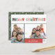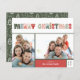Colourful budget Christmas holiday photo card for families features two of your best family photos accented by "Merry Christmas" in whimsical multi coloured lettering. Personalize with your name and the year. The cards reverse to a fun Christmas tree pattern on a sage green background.