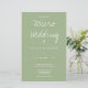 A wedding invitation on budget paper for a micro wedding. This lightweight paper invitation is done in sage and white with just enough information to win the day. (Also, the satin paper option is very thin and semi-gloss paper is suggested.) Simply add your information, add this invite to your cart, and enjoy your small and intimate wedding.