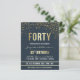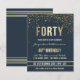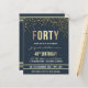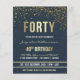 Budget Midnight Gold Confetti 40th Birthday Party Invitations. This formal, elegant, trendy, modern fortieth birthday party invitation is suitable for men or women. It comprises golden clean lines, stylish upper case gothic script, and sophisticated faux gold foil text on a midnight blue background with showers of sparkling, shimmering gold confetti and party streamers.