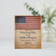Rustic American Flag Soldier Going Away Party Invitations. This rustic American Flag party invitations are perfect for a soldiers going away party, military deployments send off, military welcome home celebration, military graduation, and military retirements. Personalize this american flag invitation with your soldiers event, name, and party details. These budget military invitation postcards need to be mailed as oversized postcards so may incur standard postage fees but they don't need an envelope or a return address label.