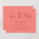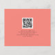 Budget Minimalist Script Coral Rose QR Code Save The Date. A budget price SMALLER 4.5” x 5.6” alternative. Available in a SEMI-GLOSS 110 lb CARD STOCK which is the default option (thicker for invitations), OR a SATIN FINISH 80 lb THINNER PAPER STOCK (ideal for enclosures). Add your QR code to your wedding website on the back. Simple elegance with Save The Date in a modern set script.The rest of the text you can easily personalise.Shown here in black on terracotta however the text and background colours can be changed if you wish via the customise further option.