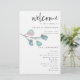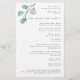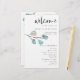 Minimalist Eucalyptus Wedding Program. Size 5.5” x 8.5” at a budget price, on an elegant 110 lb LINEN stock – for a luxury feel at great value, this is perfect for programs, as well as invitations and menus etc. This budget size alternative is also available in other paper choices. The SEMI-GLOSS 110 lb card stock is about the same thickness as a postcard, so also works well for invitations. The FELT 100 lbs paper is buff coloured, NOT white, so adds a rustic touch. The MATTE 80lbs paper stock is bright white, for crisp printing, great for your menus and programs, whilst the SATIN 80lbs paper is thin and light, ideal for enclosures. PLEASE NOTE THE OPTIONAL ENVELOPES ARE A LITTLE BIGGER IN SIZE AT 6.75” x 9” approx. This elegant design has artsy eucalyptus leaves in pastel teal and rose pink with text aligned to the right on each side. Welcome is in a set informal handwritten style script and the rest of the words you can easily personalise.