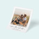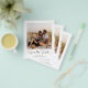 This is a budget minimalist and stylish photo wedding save the date card with a handwritten script, paired with a typewriter font, printed on a paper flyer.