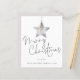 Watercolor Minimalist Silver Star Merry Christmas Card. A budget price SMALLER 4.5” x 5.6” flat card for your festive greetings on a shiny SEMI GLOSS 110 lb card stock (similar to the thickness of a postcard) PLEASE NOTE: The envelope supplied with this card is slightly larger than the card itself.. Contemporary style with modern handwritten style set script for the main header and easily personalise with your greeting and names at the bottom. A watercolor silver star illustration is at the top centre. A coordinating pale silver shade is on the back which can be changed to another colour if you like via customise further.