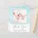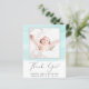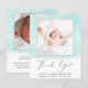 Affordable budget baby boy or baby girl birth announcement and thank you card featuring soft mint green watercolor brush strokes, your newborn's photo and "Thank You" in an elegant contemporary script with a heart swash. Personalize with his or her name, arrival date and birth stats in simple modern typography. On the reverse side, add an additional photo and a customized thank you and announcement message.