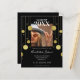 Get quality AND affordability with this modern graduation invitation. The design features a partial border of retro gold embellishments against a clean black background. All details can be personalized as well as adding in your own photo of the special graduate in your life.