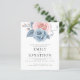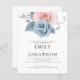 PLEASE NOTE There are two paper options to choose from for this size (4.5 x 5.6”) in the Budget range. For this product, I would recommend the semi-gloss which is a 110 gsm card stock, similar in thickness to a postcard. The Satin option is a much thinner paper 80gsm. The default is set to semi-gloss. PLEASE NOTE there is ONE per sheet. Budget Modern Blue Pink Florals Engagement Party Invitation. Artsy florals, pastel dusty blue and blush pink, flow down from the top. Easily personalise the text to your own details.