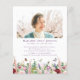 This is an elegant and whimsical modern funeral invitation card, printed on a budget friendly flyer, to celebrate the life of your loved one. The design features a beautiful calligraphy font and pink and purple based florals with delicate fluttering butterflies. This invitation can easily be personalized with your own photo and text to create a special tribute for your loved one's funeral, memorial or celebration of life using the template provided.