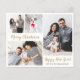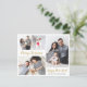 Budget, Minimalist, Elegant Calligraphy Gold Script 5 Photo Collage "Merry Christmas" Holiday Thin Card in gold and white. This festive, simple, whimsical five (5) photo holiday card template (on front 4 photo and back 1 photo) features a pretty grid photo collage and says „Merry Christmas” and „Happy Holidays” which greeting texts is written in a beautiful hand lettered bold brush script font type. On the reverse side one horizontal photo template on snowy background. Pretty greeting card for your family and friends in Christmas Holiday season. Cheap affordable Holiday cards.