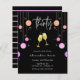 Celebrate the big 30th birthday in style and affordability with this modern girly 30th birthday invitation. Design features the word "thirty" in a modern handwritten script font with a border of colourful sparkle glitter drops and two gold champagne glasses toasting. Bottom of the card showcases the details of the birthday celebration which can be totally customized to your needs. The reverse side feature a pretty striped pink glam glitter pattern.