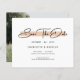 Budget Modern Minimalist Script Save The Date Invitation Card features "Save The Date" in an elegant black script over a modern geometric accent on a white background with your Save The Date information below. Personalize by editing the text in the text boxes provided and adding your favourite photo to the reverse. Designed for you by ©Evco Studio www.zazzle.com/store/evcostudio