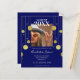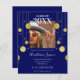 Get quality AND affordability with this modern graduation invitation. The design features a partial border of retro gold embellishments against a navy blue background. All details can be personalized as well as adding in your own photo of the special graduate in your life.