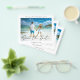 This is a modern budget wedding save the date card using a modern calligraphy style font along with a simple photo design, printed on a flyer.