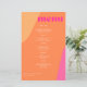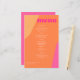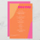 Abstract shapes retro vintage 70s style unique budget affordable wedding menu card with bold typography in a vibrant trendy modern hot pink magenta and orange chic colour palette. +++++++ Please note that all the colours are changeable. ++++++++++++ Suitable for casual stylish contemporary weddings.